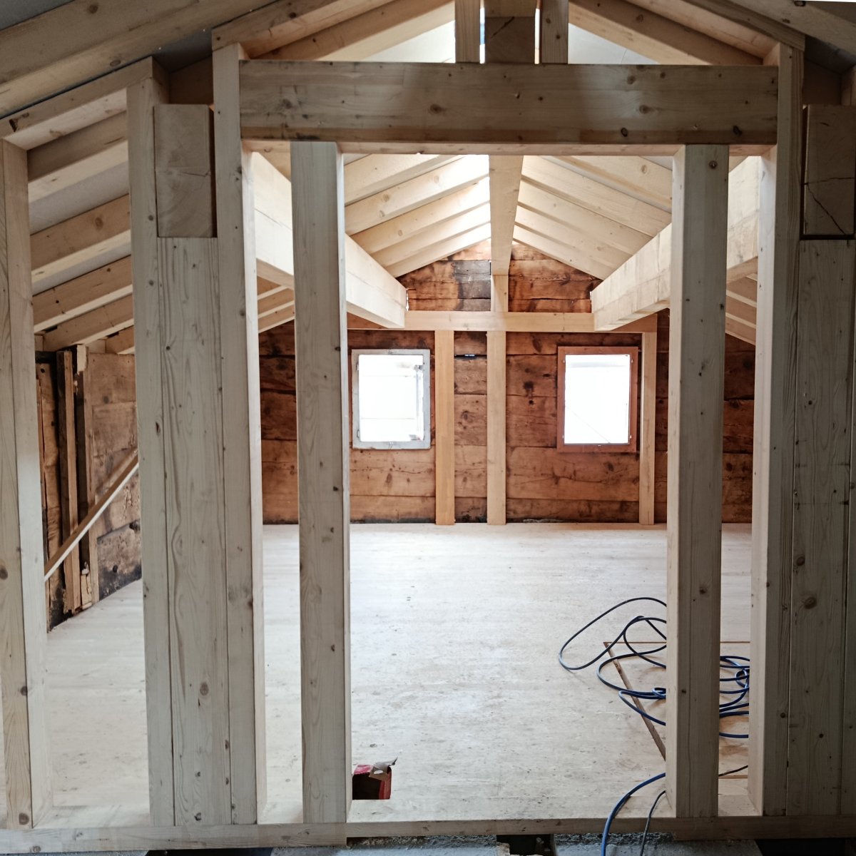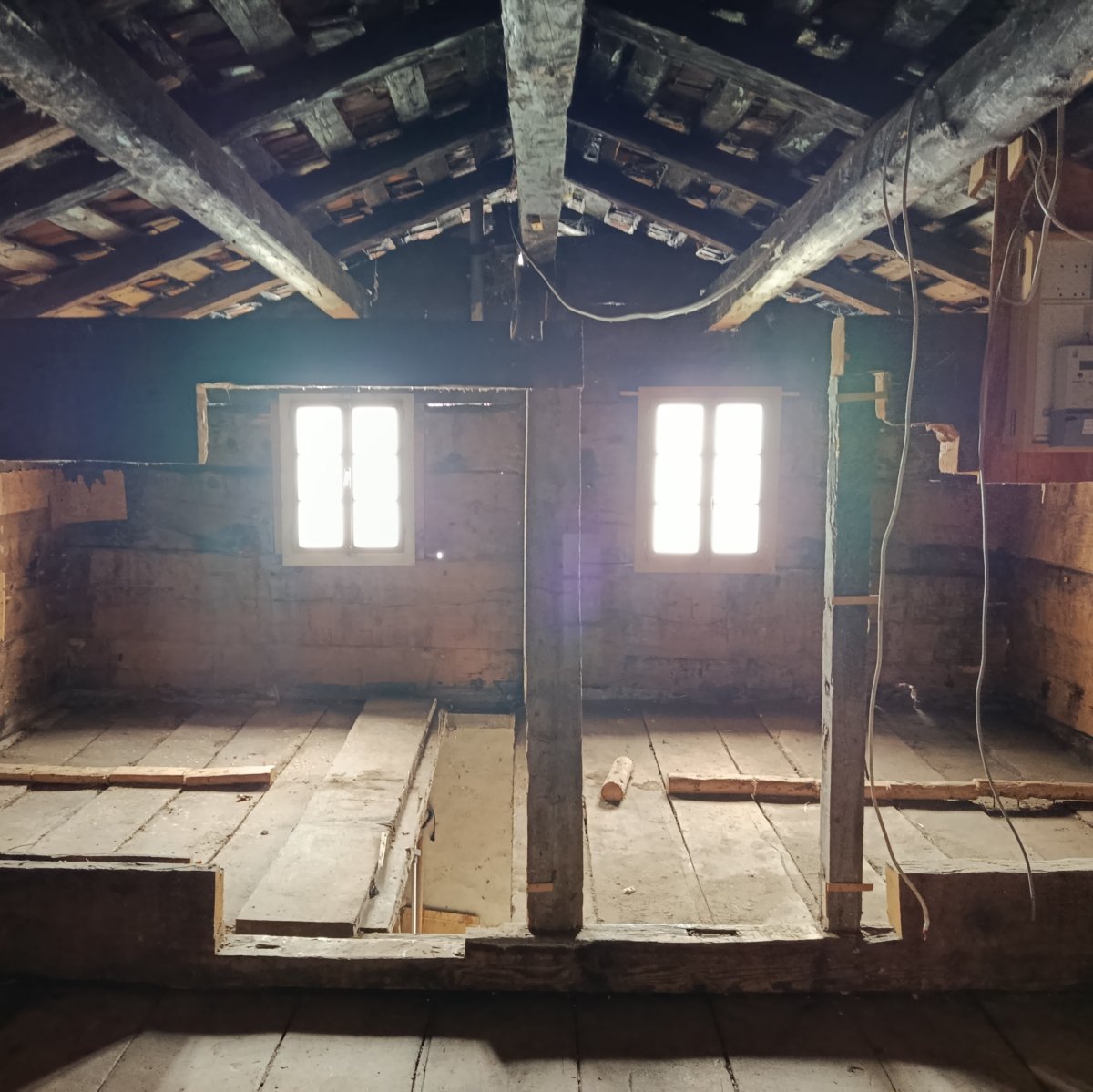 Programme : transformation et agrandissement de la partie habitable Mandat : conception et réalisation Enveloppe : laine de verre (murs 10 cm, toit 20 cm) / vitrage triple