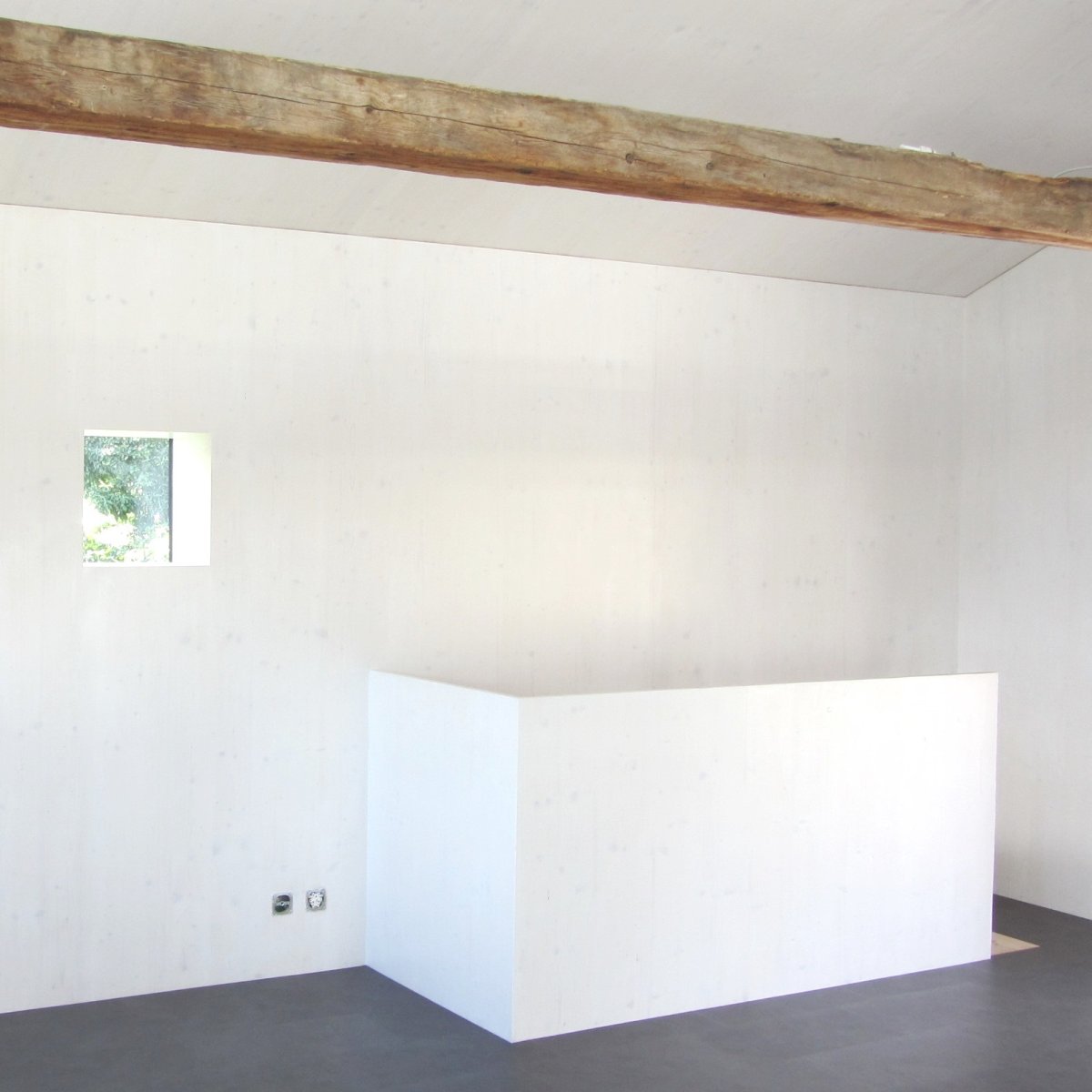 Réaliser une Small Eco House… Le projet veut démontrer qu’il est possible de vivre et travailler dans un espace très réduit et donc de consommer peu. Vu la taille de l’objet, chaque centimètre de l’espace intérieur a été étudié et optimisé. L’intervention souhaite sensibiliser à la sauvegarde du patrimoine rural bâti en montrant les possibilités de transformation. Malgré le mauvais état initial du socle, l'aspect extérieur a été gardé le plus intact que possible.