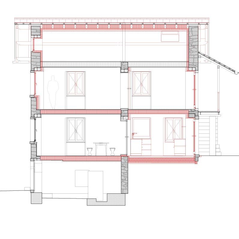 Enveloppe : laine de verre (murs 10 cm, toit 24 cm) / vitrage triple